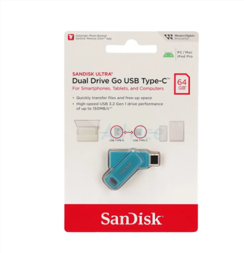 Capacity : 64 GB Interface : USB 3.2 Gen1 Type-C / USB-A Smartphones, tablets, and other host devices with USB Type-C ports The 2-in-1 flash drive with USB Type-C and Type-A connectors