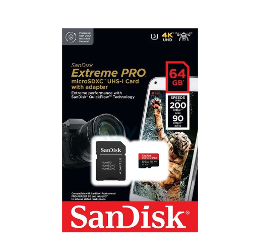 Micro SD Card 64GB SANDISK Extreme Pro SDSQXCU-064G-GN6MA (200MB/s.) - A0147545