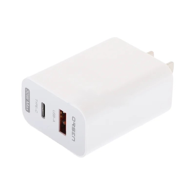 คุณสมบัติ Adapter 2 Ports (1USB + 1Type-C) Charger ORSEN (30W,C15) White