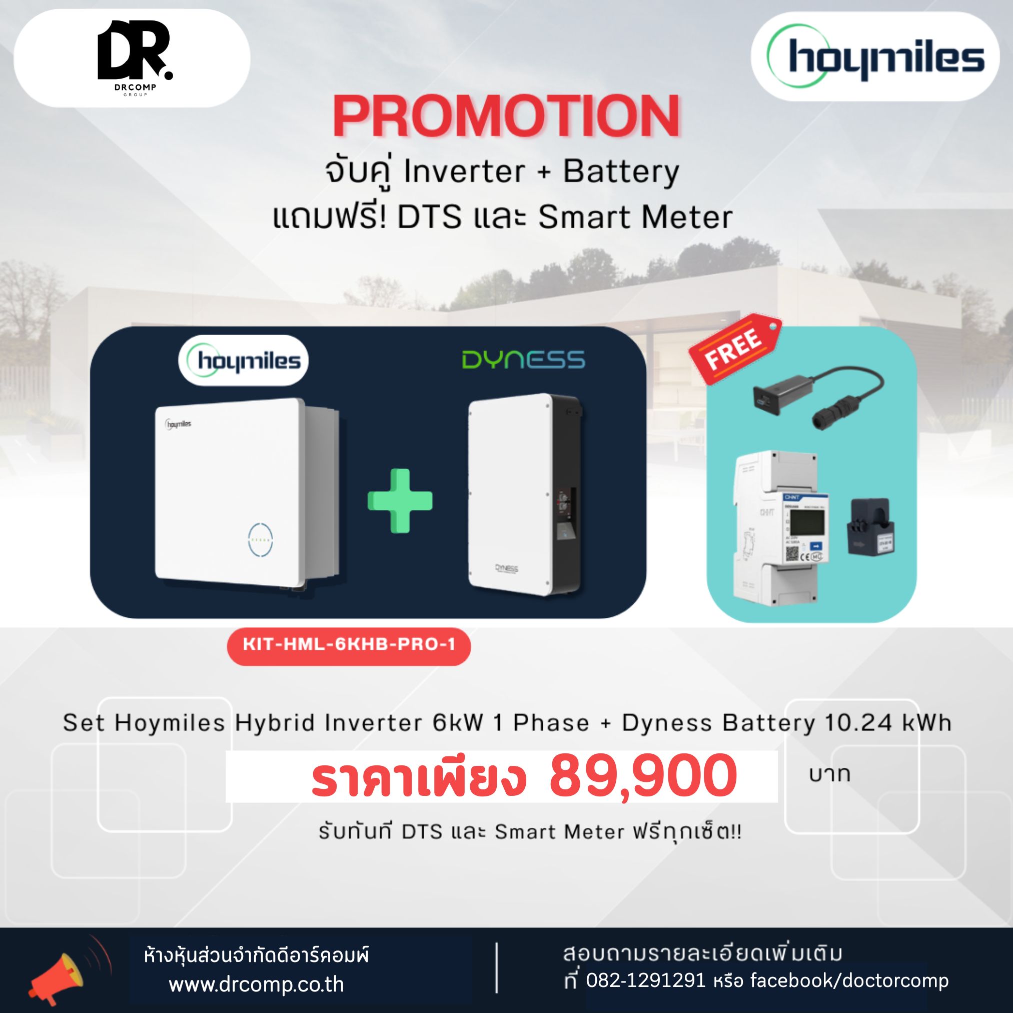 ✨Hoymiles Hybrid Inverter รุ่น 6K1P แบตเตอรี่ Dyness รุ่น Powerbox Pro 200AH / 10.24kwh ใช้งานง่าย เหมาะสำหรับบ้านพัก สำนักงาน ร้านค้า รองรับการใช้ไฟทั้งกลางวันและกลางคืน รองรับการใช้งานที่ยาวนาน รับประกันสินค้า 10 ปี