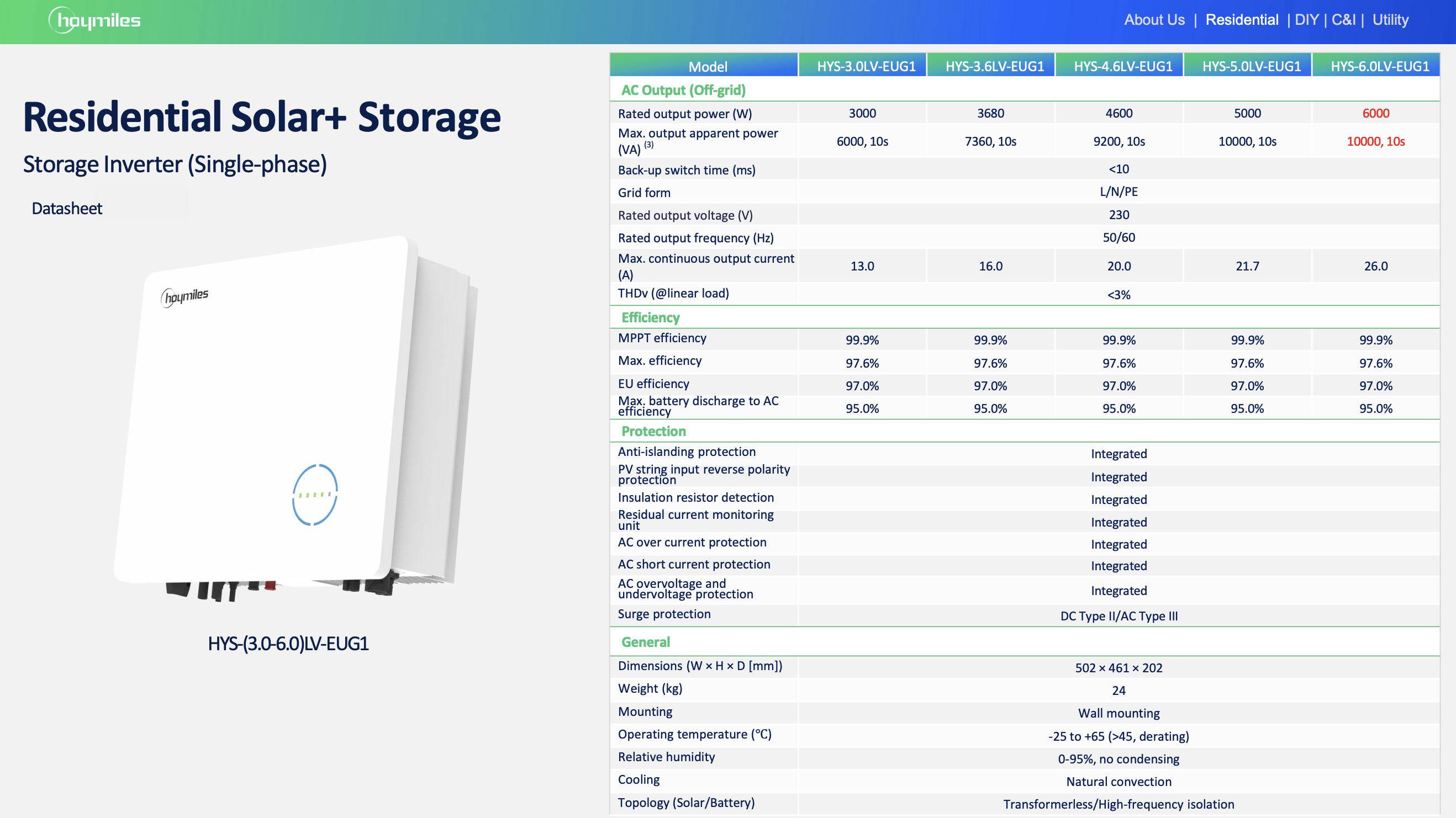 Hoymiles 𝐇𝐘𝐒-𝟔.𝟎𝐋𝐕-𝐄𝐔𝐆𝟏 (𝟔𝐤𝐖 𝟏เฟส)
