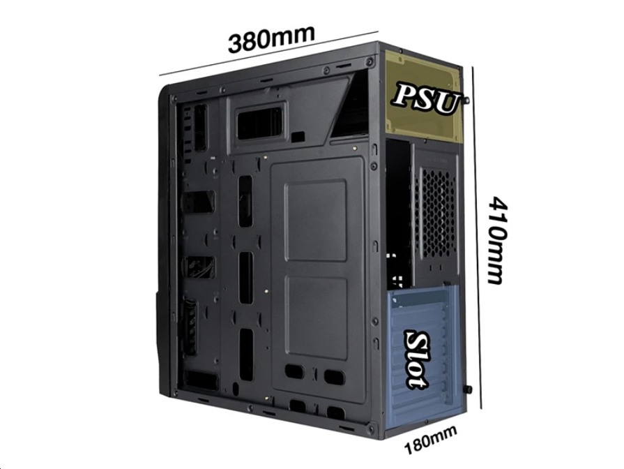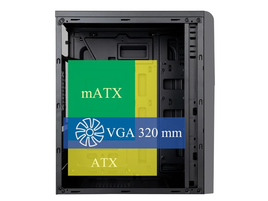 Dimension : 380mm (L) x 180mm(W) x 410mm (H) Power Supply : No Power Mainboard Support : ATX / Micro ATX / Mini ITX Fan Suppport : Rear 80mm (x1) / Side 120 (x1) VGA Length Support : 300mm Front Panel I/O : USB 2.0 (x2), Headphone (x1), Mircophone (x1) หน้ากากเคลือบเงา โครงสร้างแข็งแรงประสิทธิภาพการทำงานดีเยี่ยม ปุ่มกด มีแผงไฟ LED แสดงสถานะการทำงานและการโหลดข้อมูล เคสทำงานด้วยความเงียบและระบายความร้อนได้ดีเยี่ยม ติดตั้งและดูแลรักษาง่าย เคสผ่านมาตรฐาน EMI designed and CE Pass หมดห่วงเรื่องกระแสไฟฟ้ารั่วไหลและคลื่นรบกวนต่อระบบประสาท